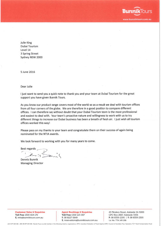 Dubai Tourism has become well known, trusted, respected, valued by the Australian Travel Industry for the most part as a result of the dedication and outstanding representation provided by Julie King.